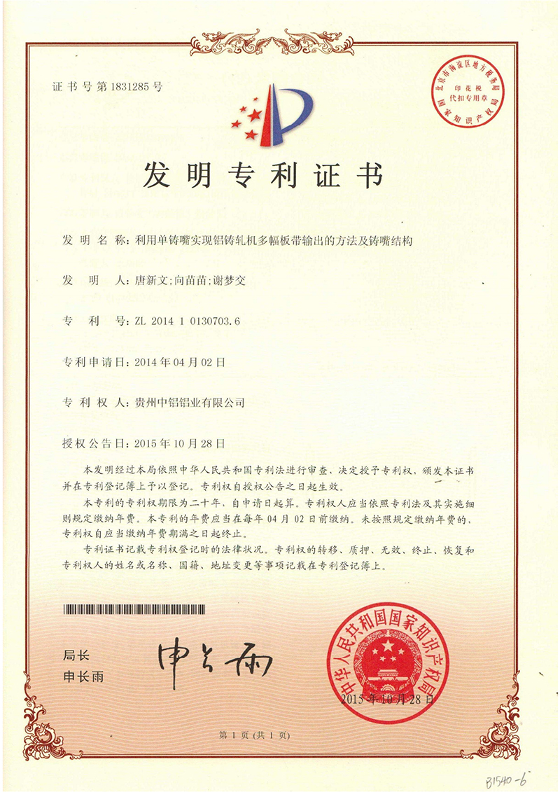 發(fā)明專利證書