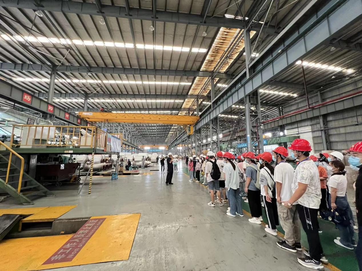 培訓期間,學生們先后參觀了公司的鑄軋車間、冷軋車間,車間主要負責人對正在生產的鑄軋機、冷軋機、成品包裝及運輸等環節進行詳細的介紹,從整體到部分、由淺入深,通過讓學生現場參觀,深切感受現代化冶煉工作的生產工藝方法。此次培訓不僅搭建了一個良好的學習平臺,加強學生對理論知識和工作實踐的結合重要性認識,更增進了學校與企業之間的溝通與交流,加強高校生對企業的了解,按需拓崗,從而進一步為提升高校畢業生就業作出應有的貢獻。